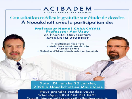 خلال زيارة إلى نواكشوط في يناير 2026، سيلتقي البروفيسور حمدي كاراكايالي، جراح زراعة الأعضاء المتخصص، والأستاذ المشارك الدكتور أنت أوزاي، أخصائي أمراض الدم في مستشفى أجيبادم أتاكنت (تركيا)، بمرضى موريتانيين.